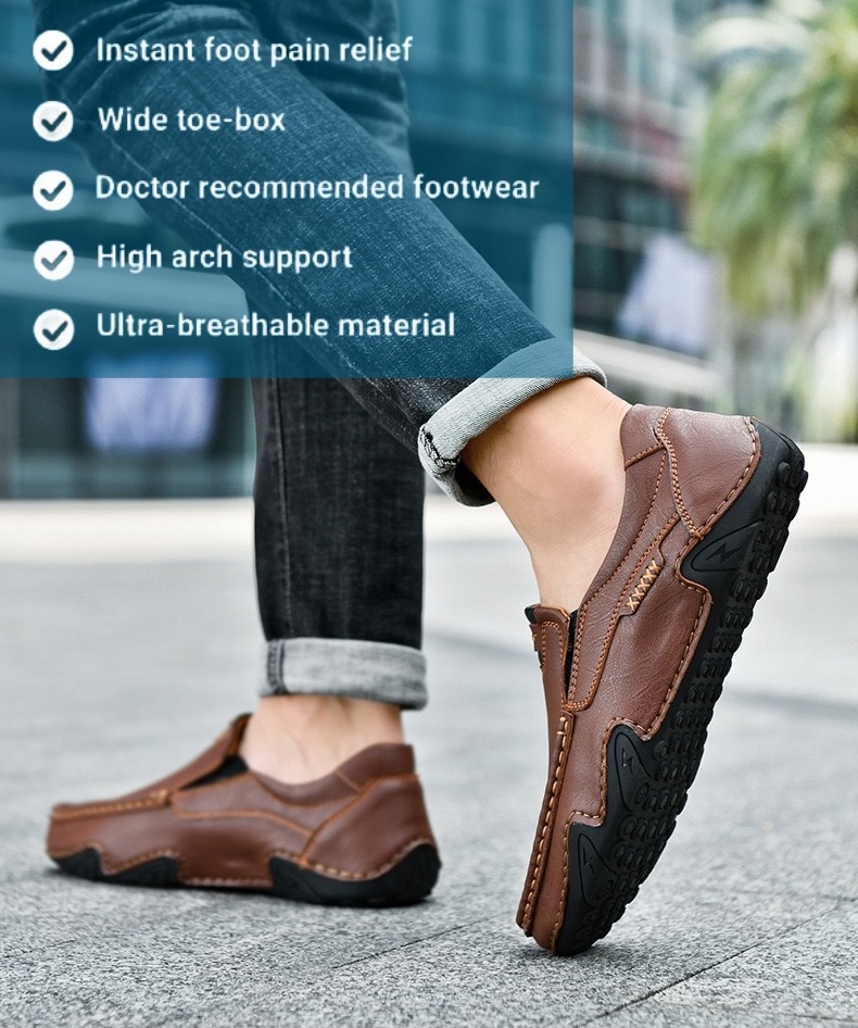 The waterproof cow leather upper makes the casual slip-on shoes lightweight and breathable. The EVA sole provides good cushioning, which absorbs shock while you are walking. The shoes give great support which are suitable for people who need shoes on their feet all day. You can take the shoes as home slippers, work shoes, or travel sneakers.