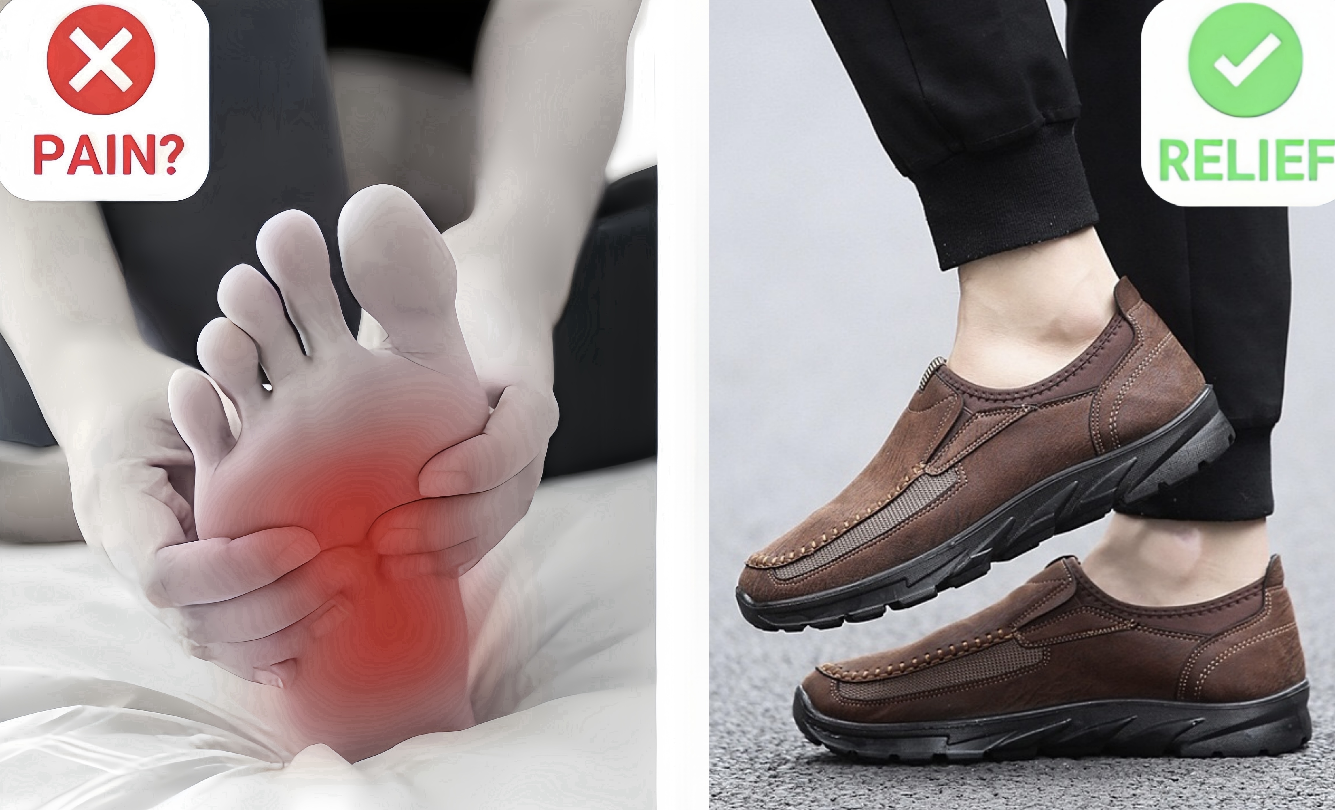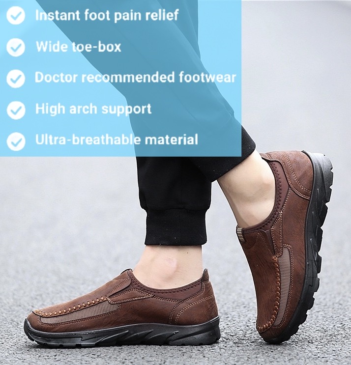PLANTAR FASCIITIS?  HEEL PAIN?  FOOT PAIN? NEUROPATHY? With The ARCH SUPPORT INSOLE improves foot and leg alignment, enhances comfort, and helps ease stress and pain caused by flat feet (Pronation), bunions, arthritis, and diabetes.if you have foot pain but still want to have a pair of comfortable casual fashion shoes,just choose our ReliefFoot® , they will perfectly show the unique style for men.