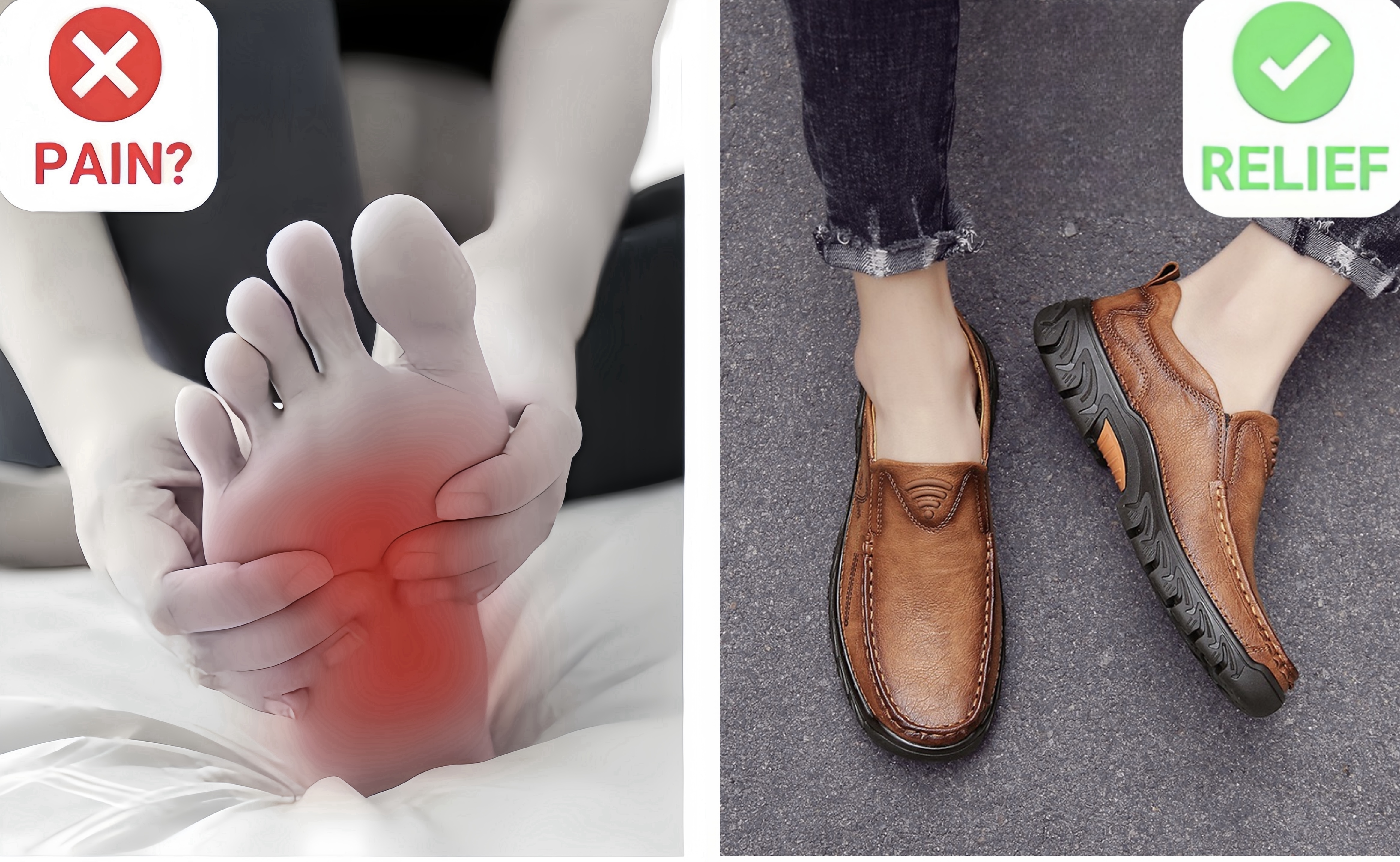 PLANTAR FASCIITIS? HEEL PAIN? FOOT PAIN? NEUROPATHY? With The ARCH SUPPORT INSOLE improves foot and leg alignment, enhances comfort, and helps ease stress and pain caused by flat feet (Pronation), bunions, arthritis, and diabetes.if you have foot pain but still want to have a pair of comfortable casual fashion shoes,just choose our GARB® , they will perfectly show the unique style for men.
