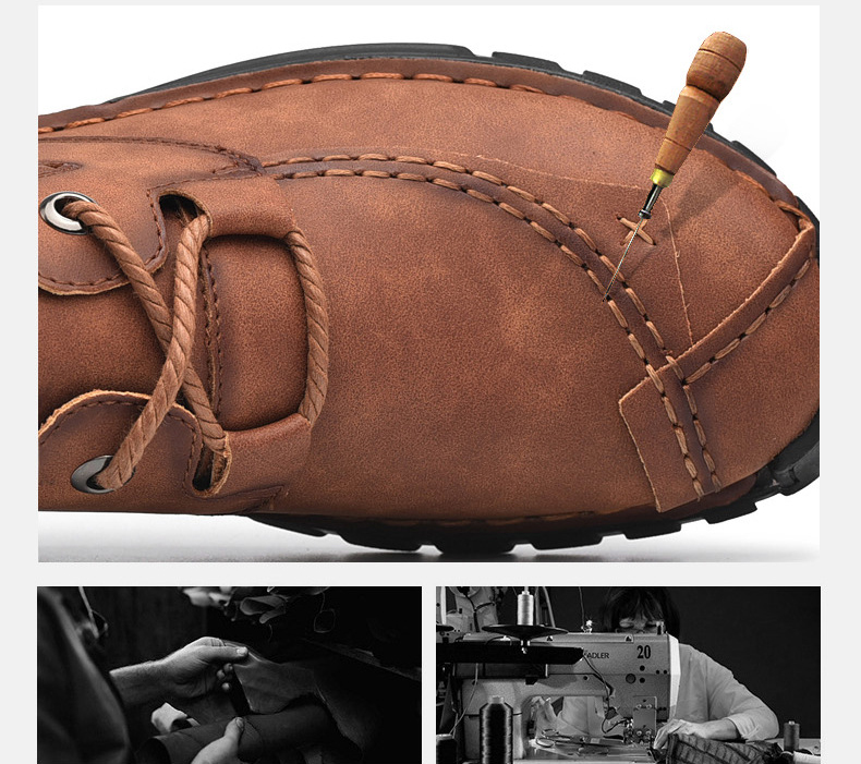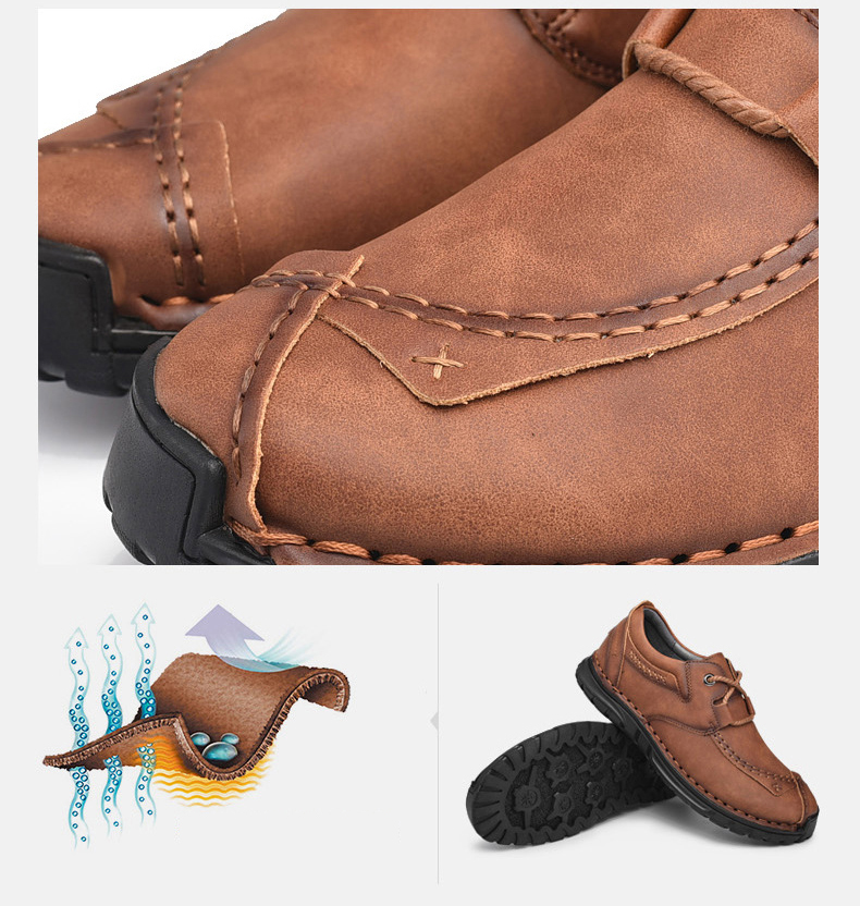 Hand-sewn, even and neat, double-row solid lines, reinforced upper, durable and comfortable