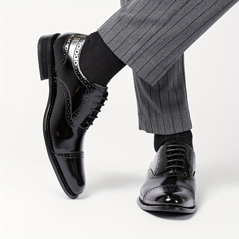 Step into timeless elegance with the Windsor Cap-Toe Leather Oxford Shoes. These sophisticated oxfords, crafted from split cow leather with a sleek cap-toe design, are built for comfort and durability. Featuring a non-slip rubber sole and microfiber lining, the Windsor Shoes are perfect for formal settings, from the office to special events, offering style and support for the modern professional.